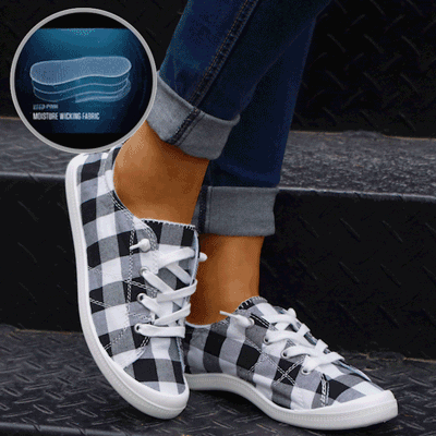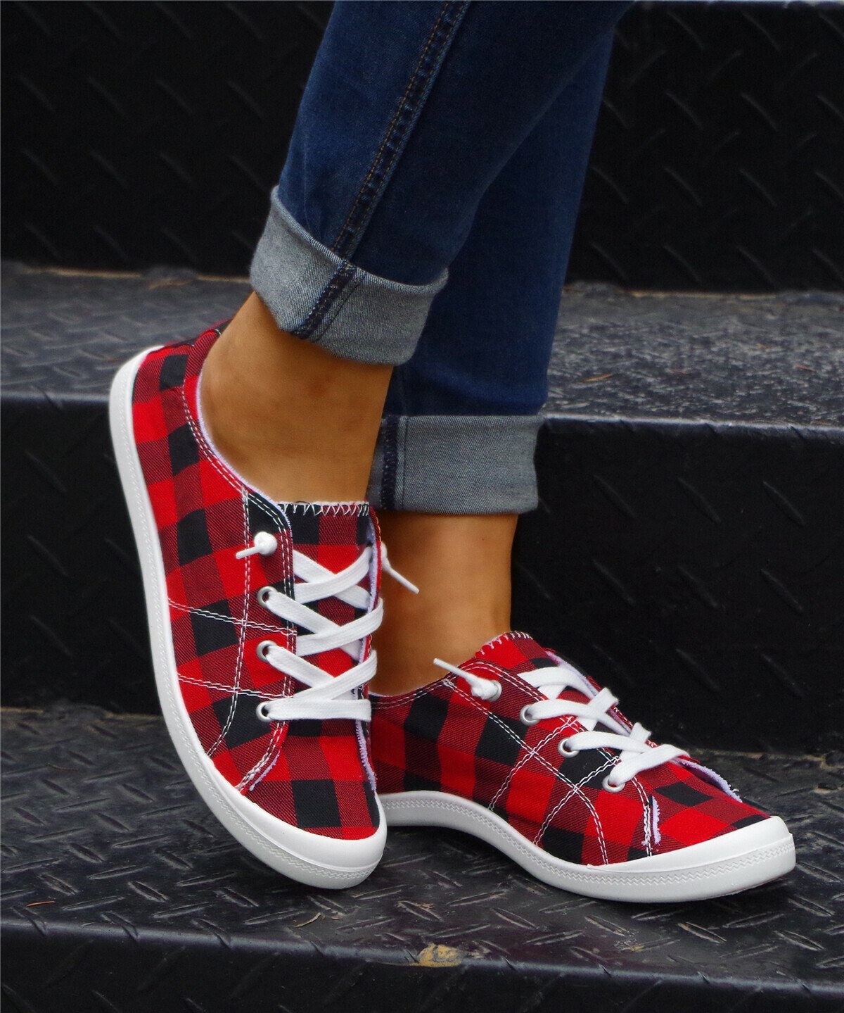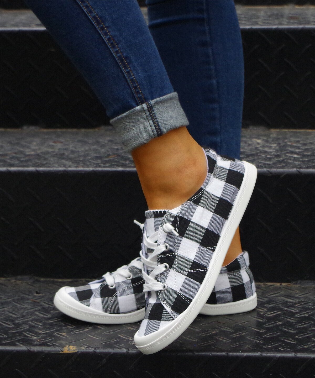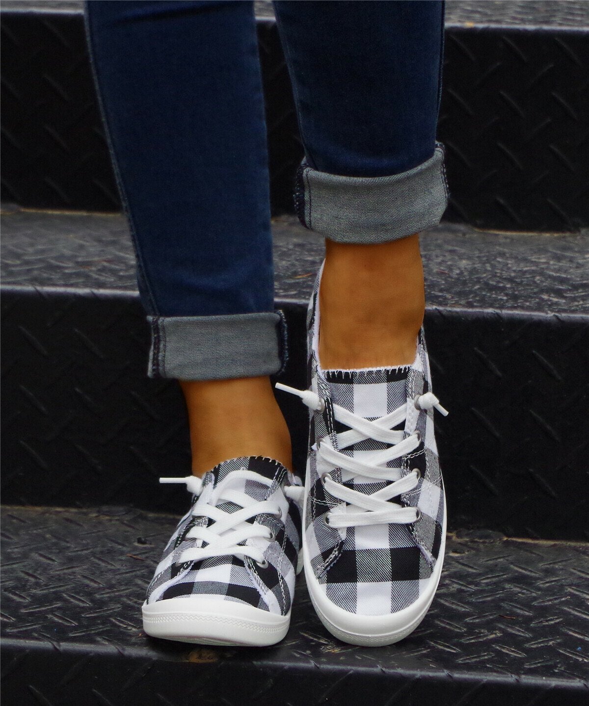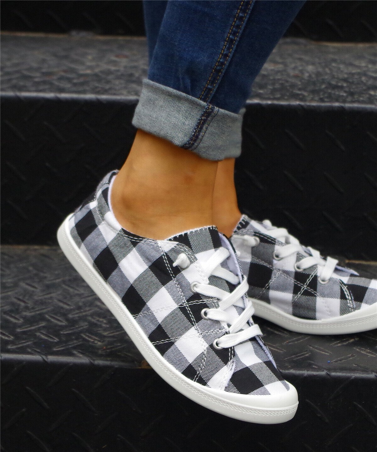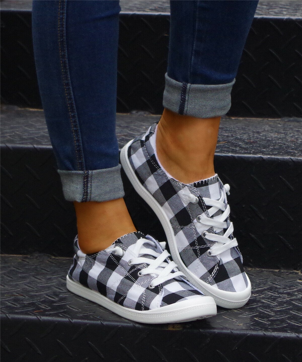 2021 Women's Lace-up Check Denim Canvas Sneakers