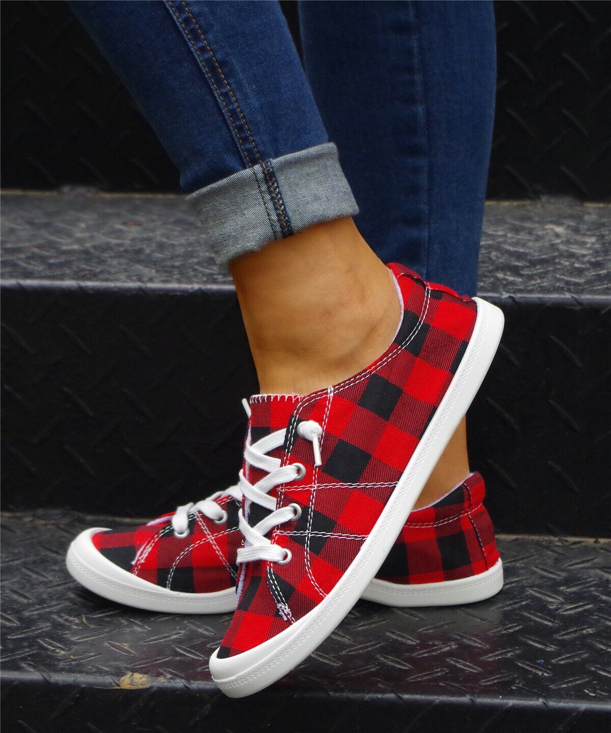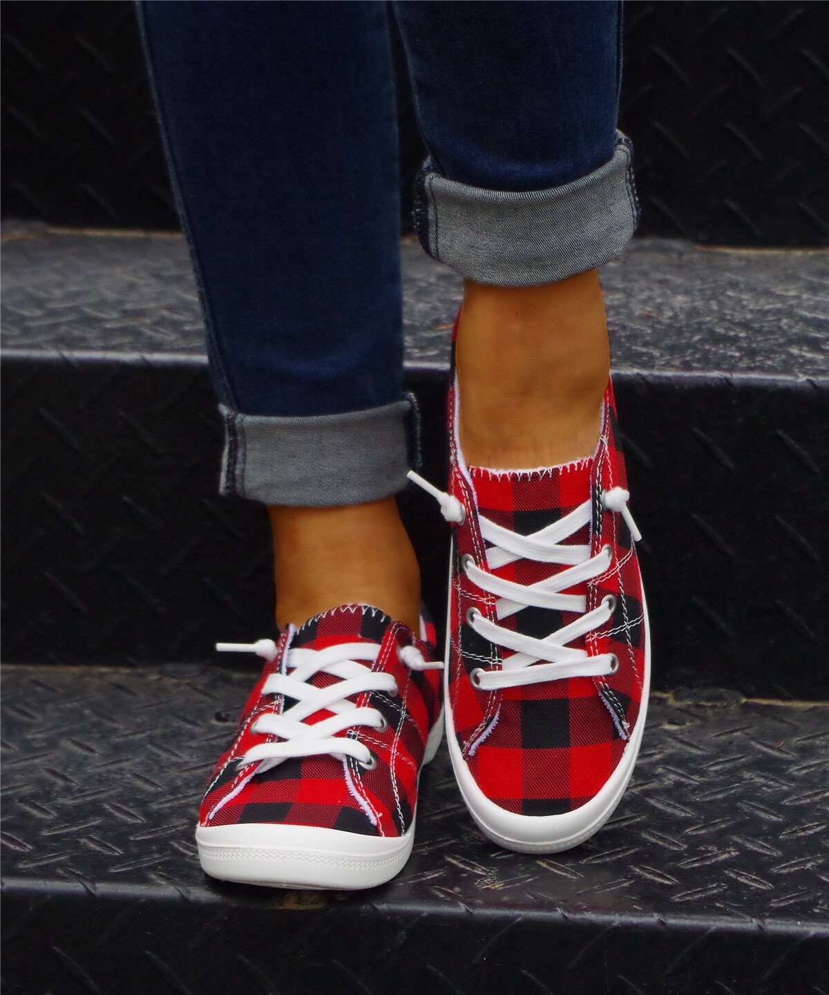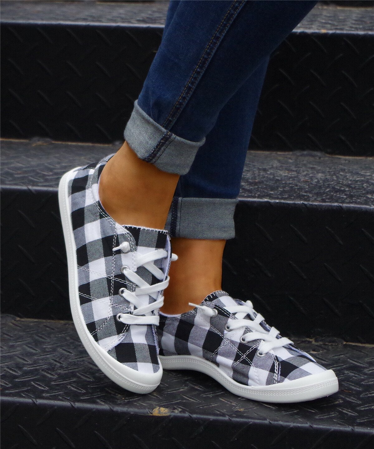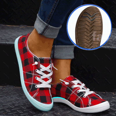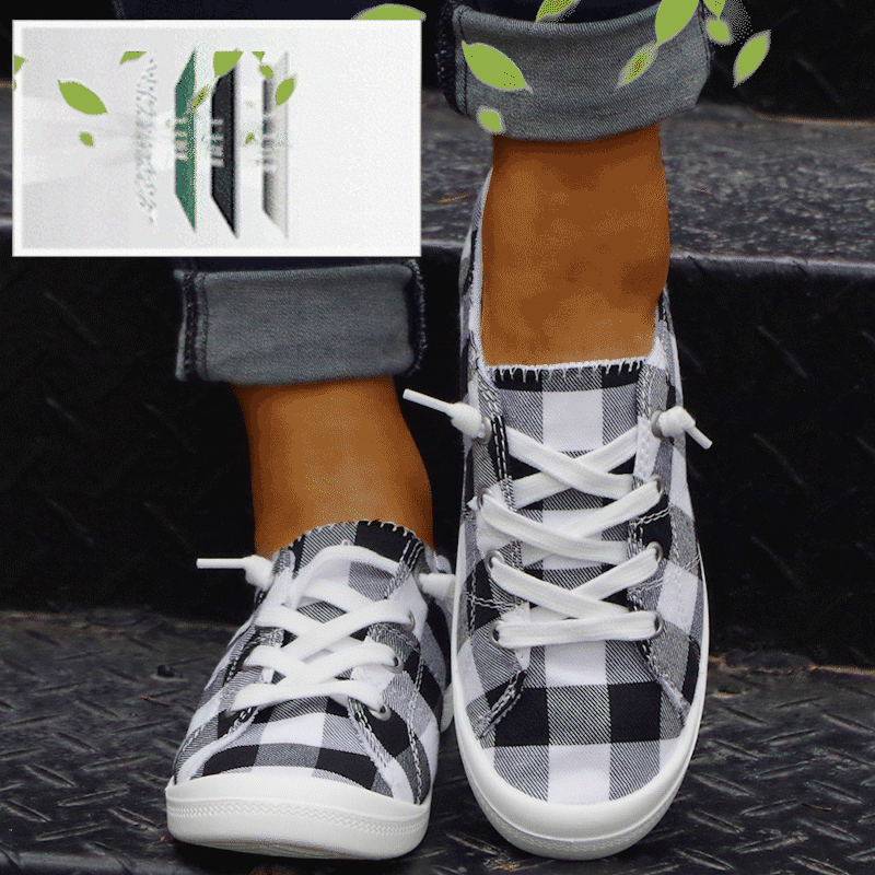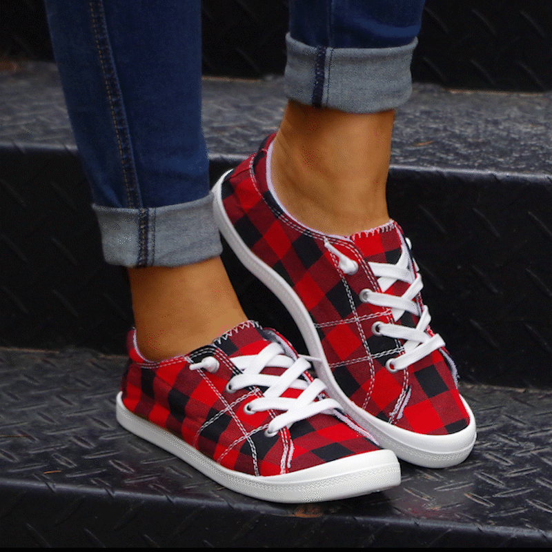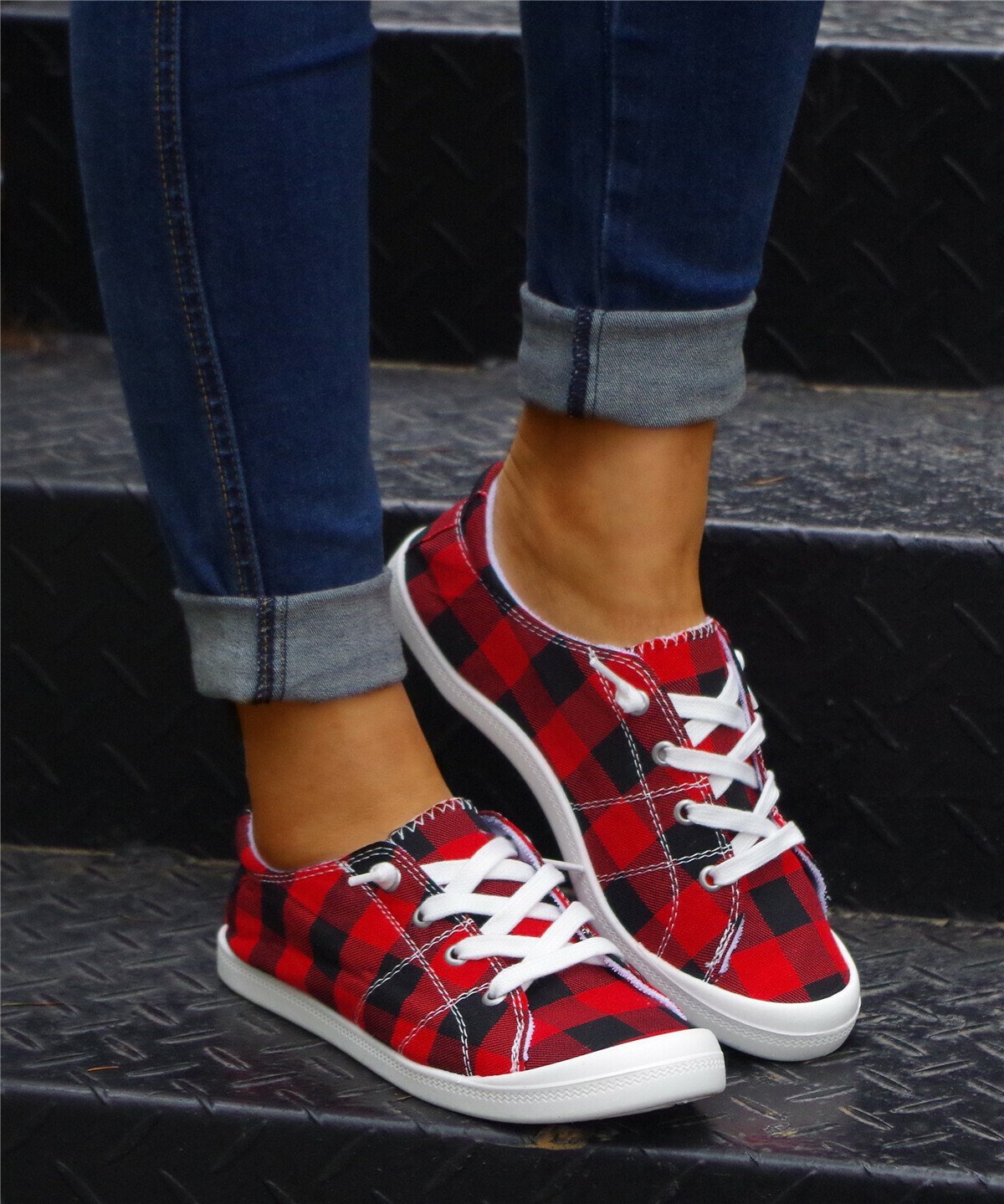 2021 Women's Lace-up Check Denim Canvas Sneakers