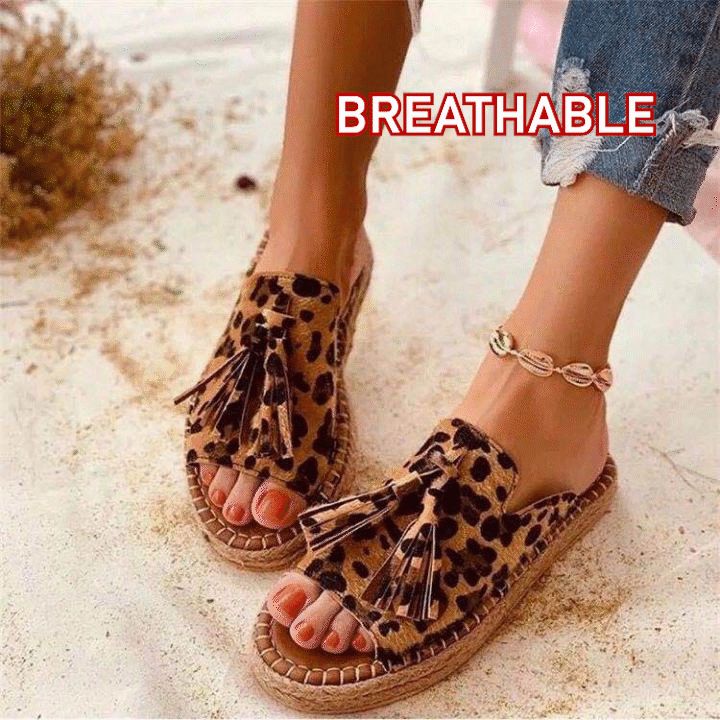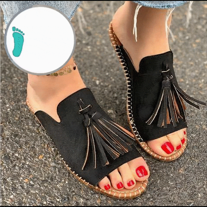 PACKAGE:1*2021 Womens Tassels Open Toe Flats Slides