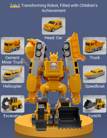 TRANSFORMING DESIGN: The car in the set, such as trucks, forklifts, excavators, etc., can be assembled together into robots, providing endless entertainment and exploration.