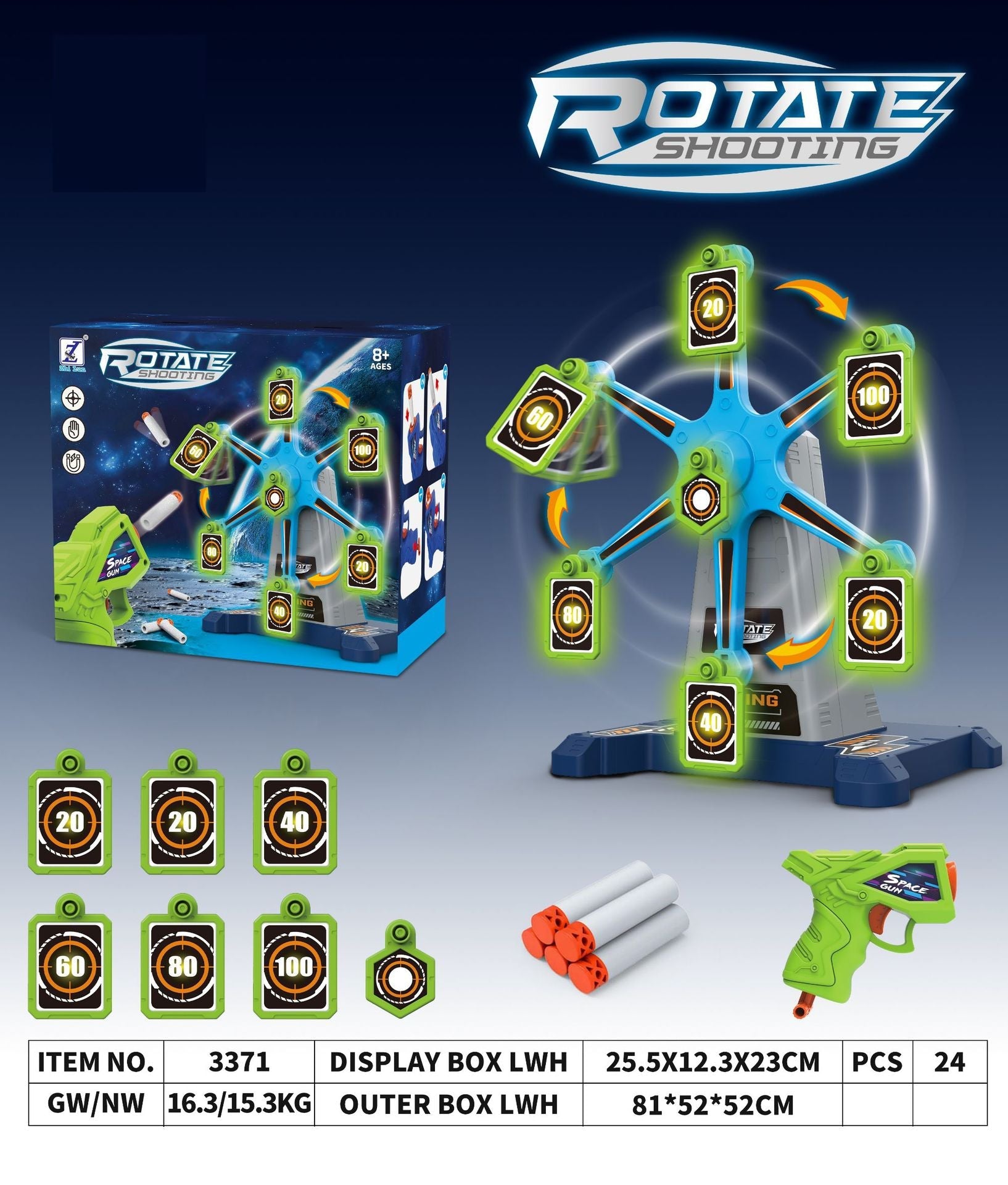 ✨COMPLETE SET: The set includes everything needed for hours of play: toy gun, foam darts, and glow-in-the-dark targets. It's a comprehensive package for endless entertainment.
