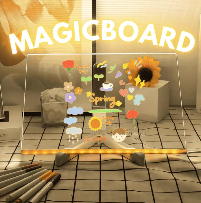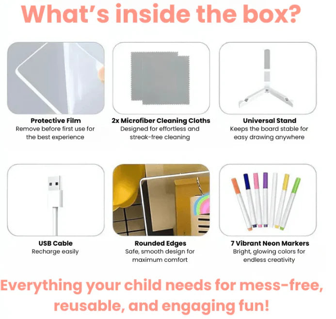 With the light-up LED drawing board, children can discover their creativity in a whole new way! This innovative drawing board combines the joy of drawing with fascinating light effects that make every work of art shine. Whether for creative notes, drawings or as a weekly planner - the LED drawing board provides glowing fun and encourages creativity at the same time
